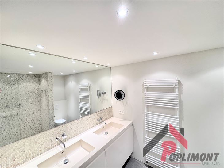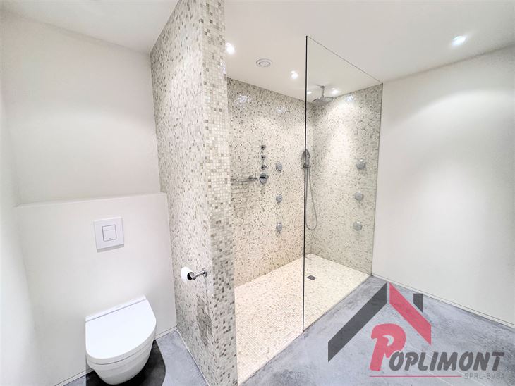 • Suite parentale: chambre  ±25 m² + dressing (7 m²) avec étagères intégrées, salle de bain privative (9 m²) : douche italienne, double lavabo, WC et accès à la terrasse communiquante