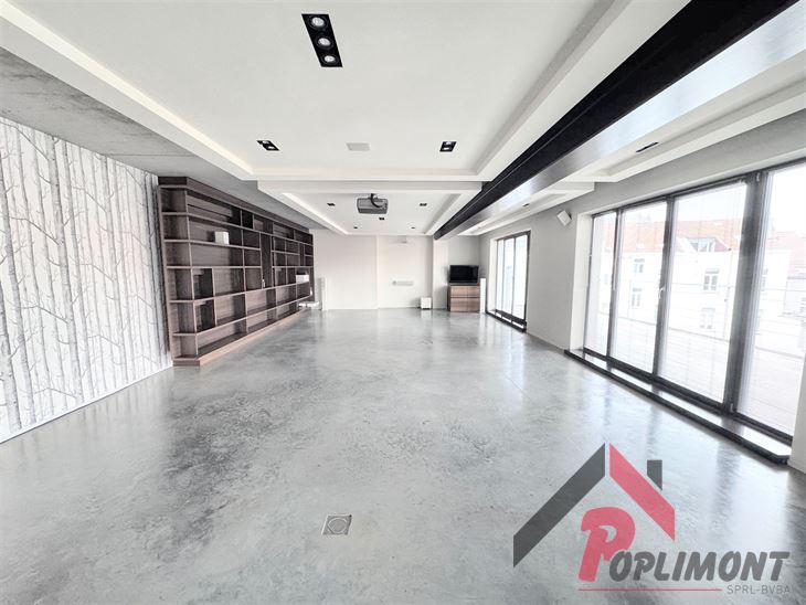 • Plateau de ±115 m² au style loft avec poutres apparentes et finitions béton