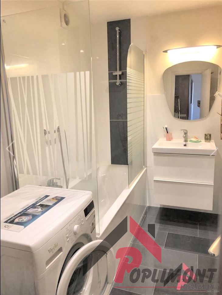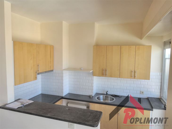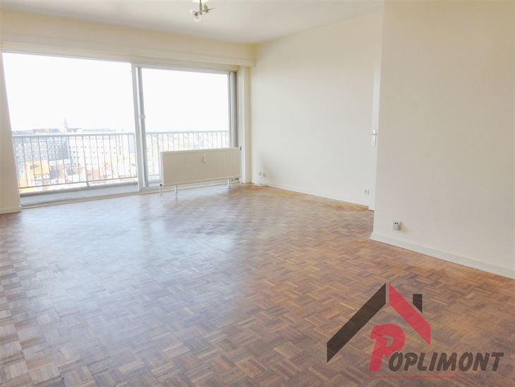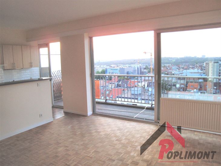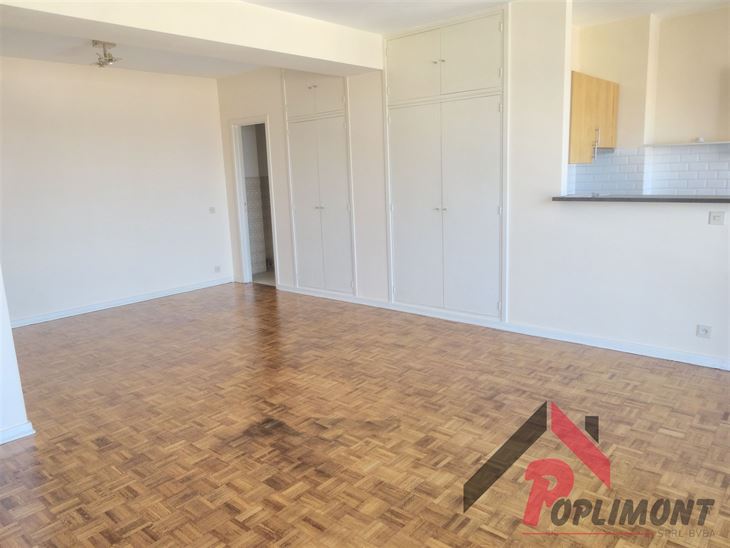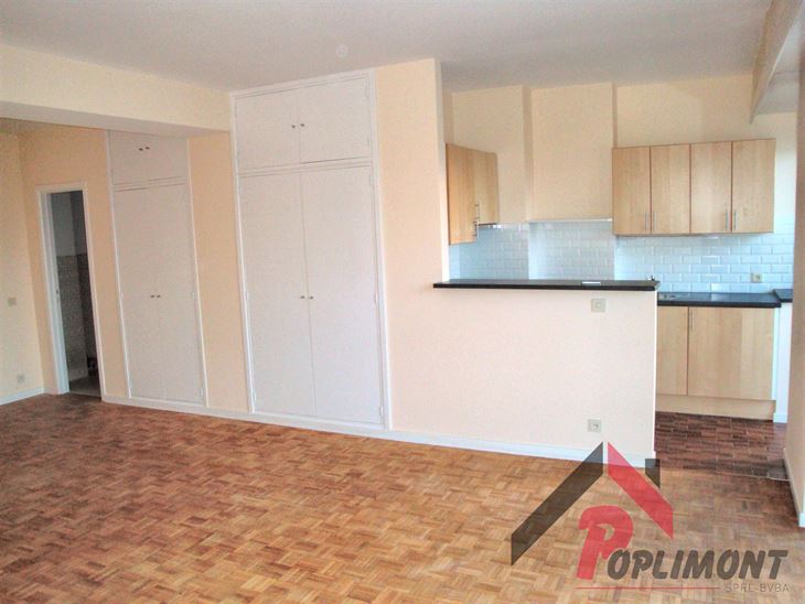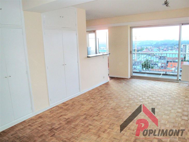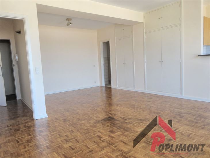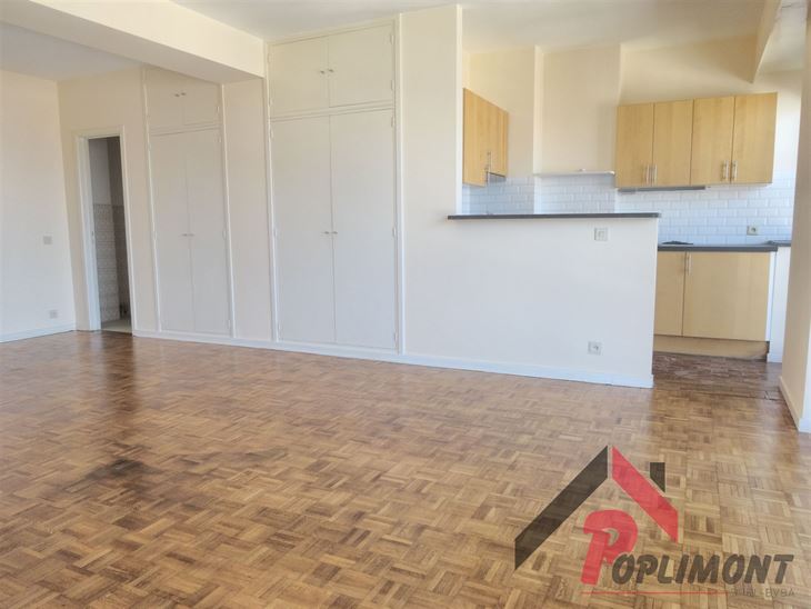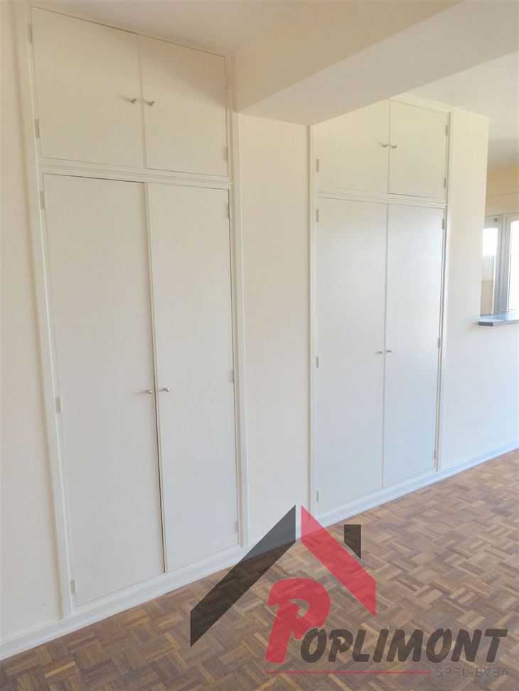 Lumineux studio (50m²) en excellent état avec possibilité de coin à dormir et belle terrasse sud avec vue panoramique sur Bruxelles (9ème étage sur 12).